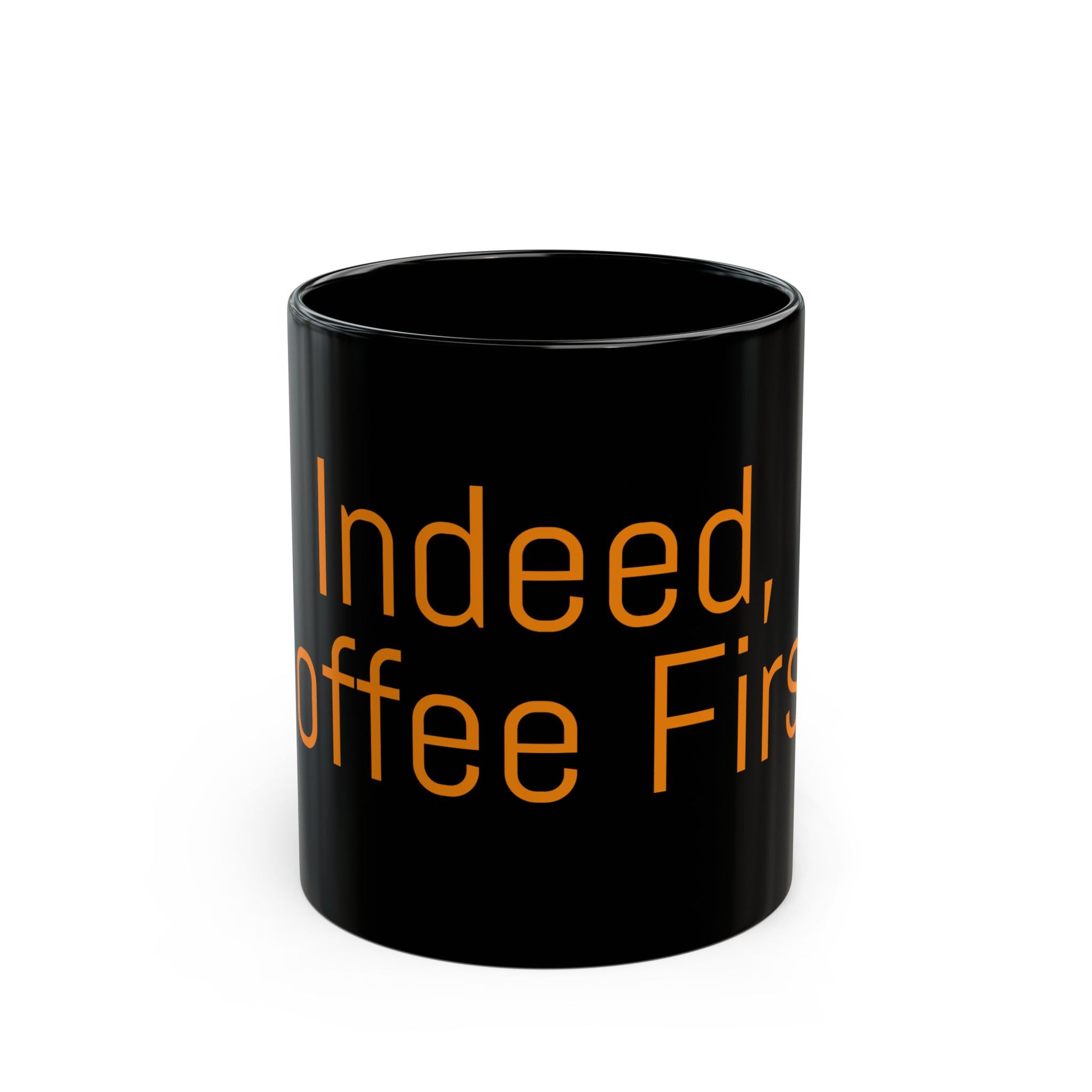 Coffee Lovers Black Mug - "Indeed, Coffee First" - Perfect Gift for Birthdays, Holidays, Office, Home, or Any Occasion