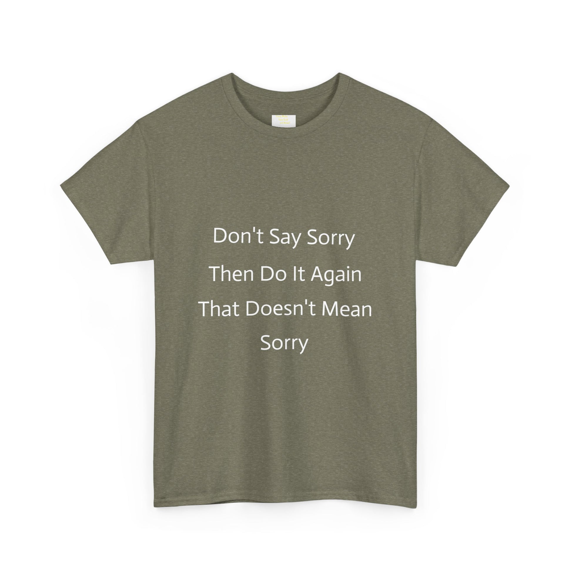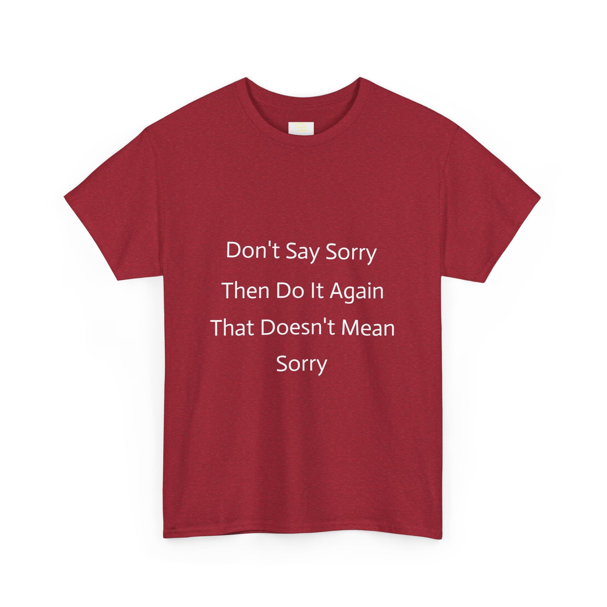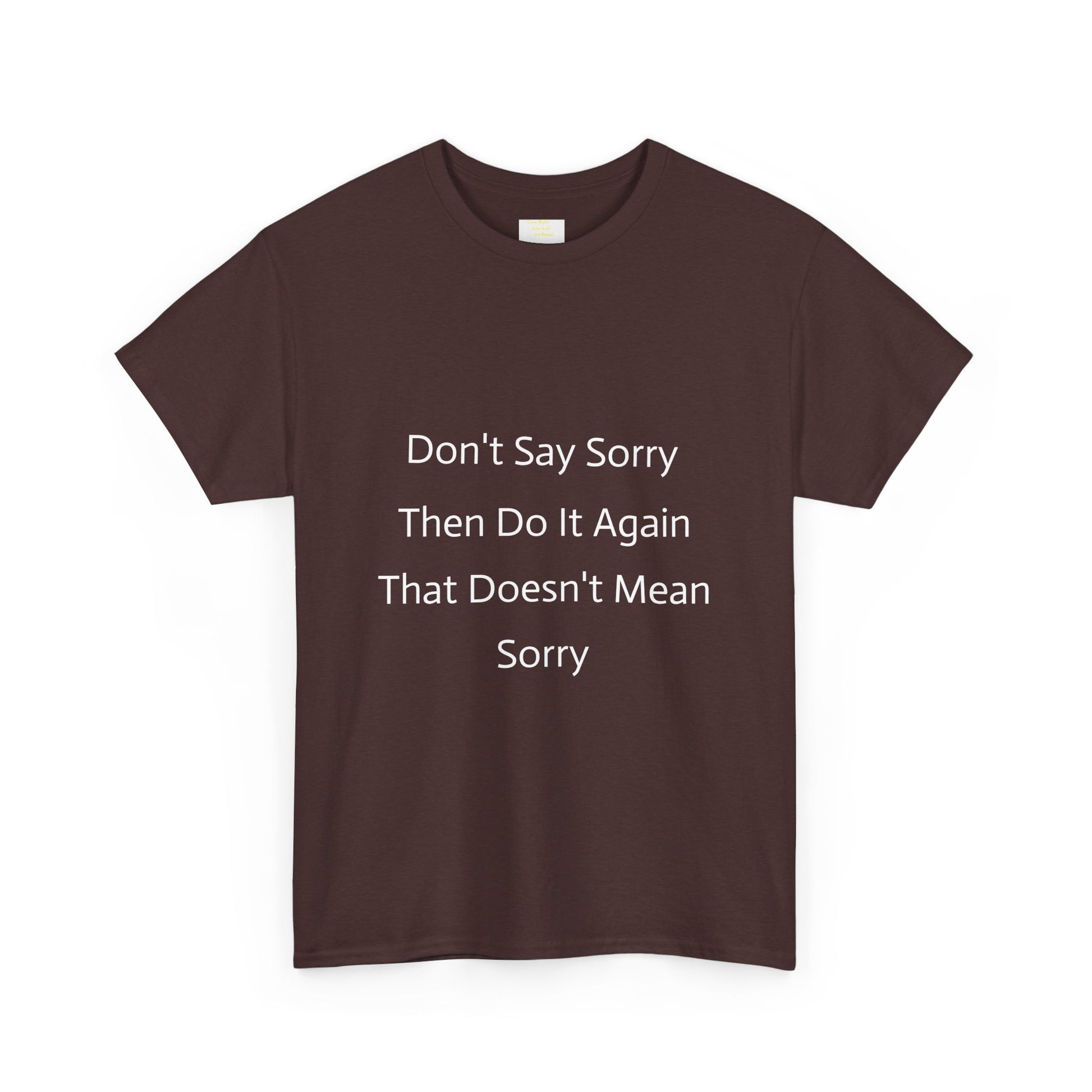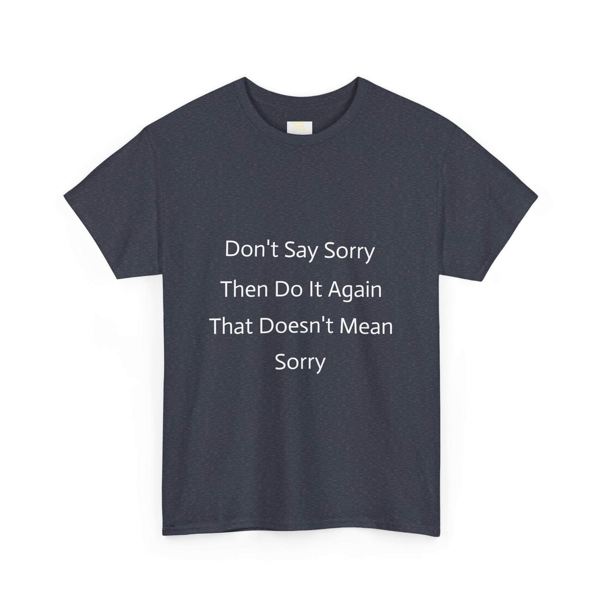 Unisex Heavy Cotton Tee - 'Don't Say Sorry, Then Do It Again' Statement Shirt, Funny Gift, Casual Wear, Perfect for Everyday and Events