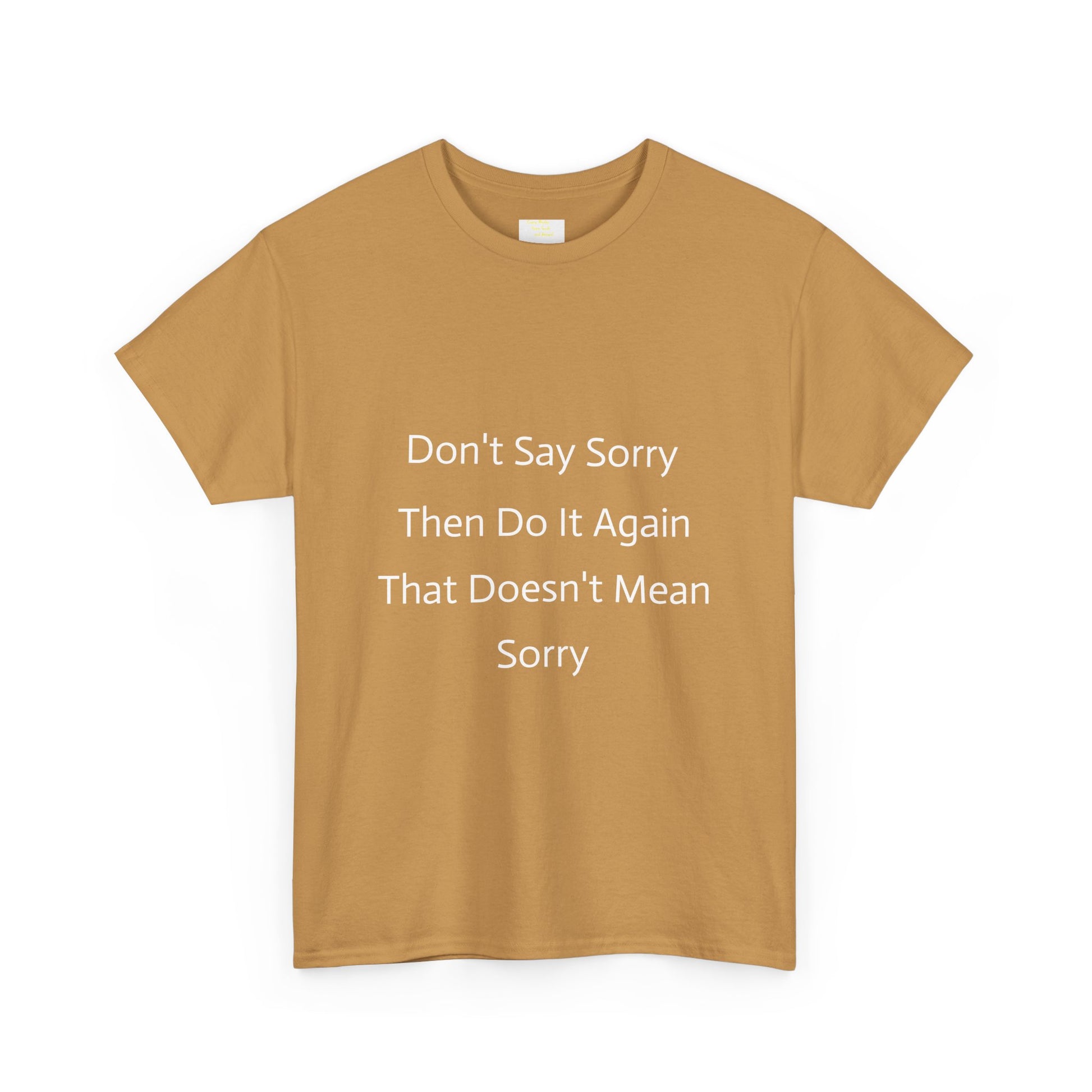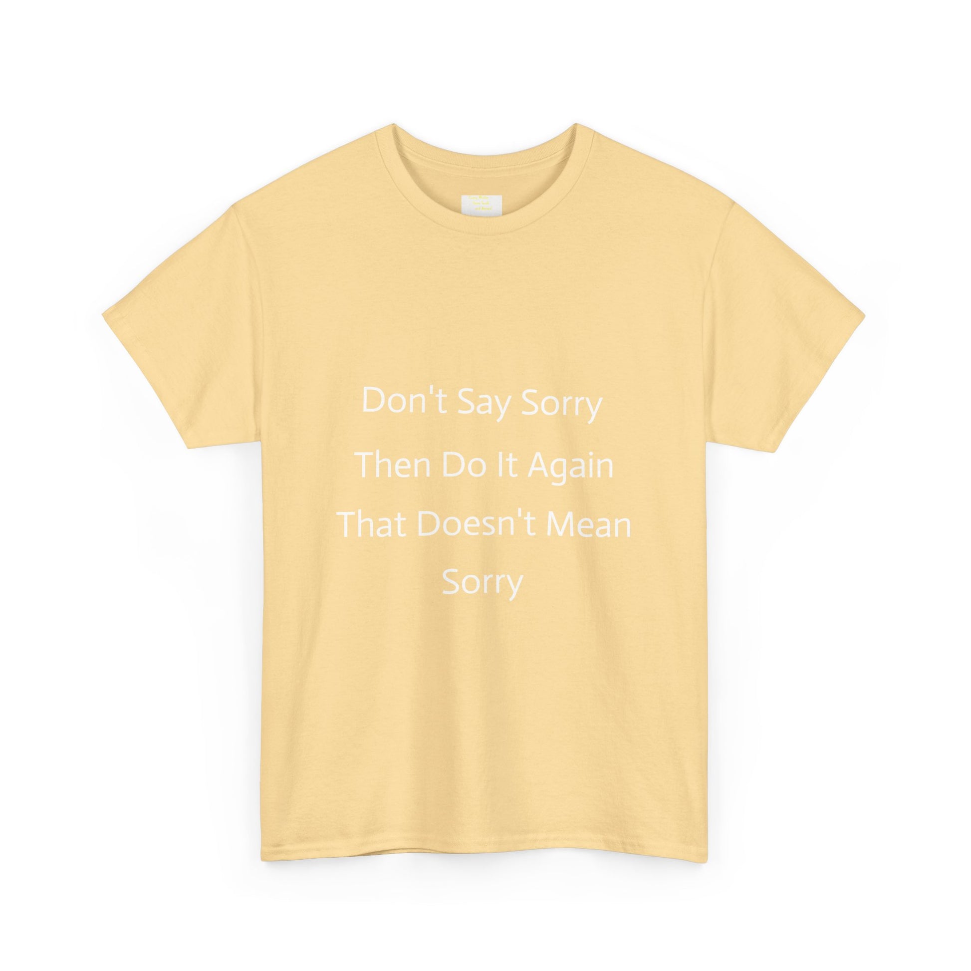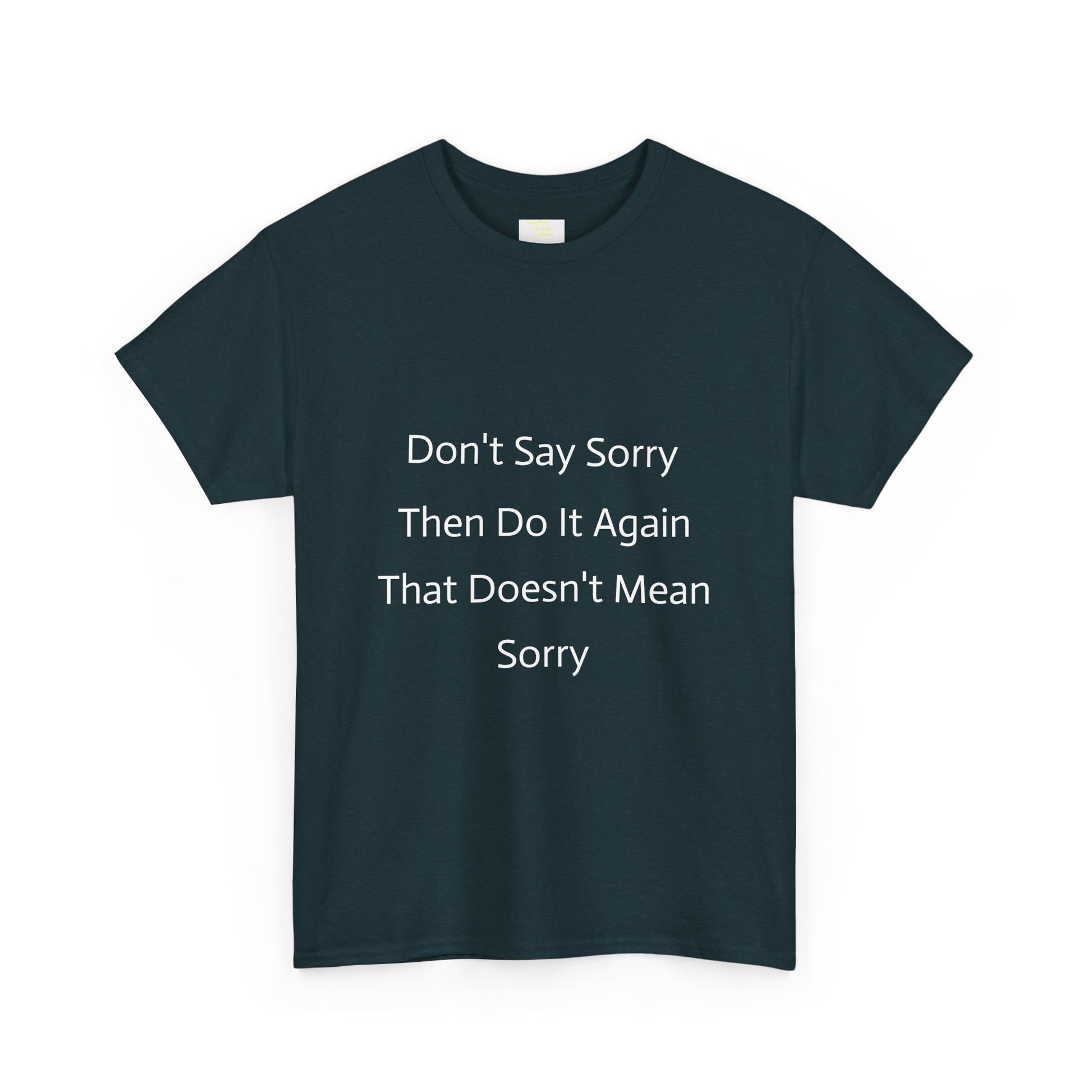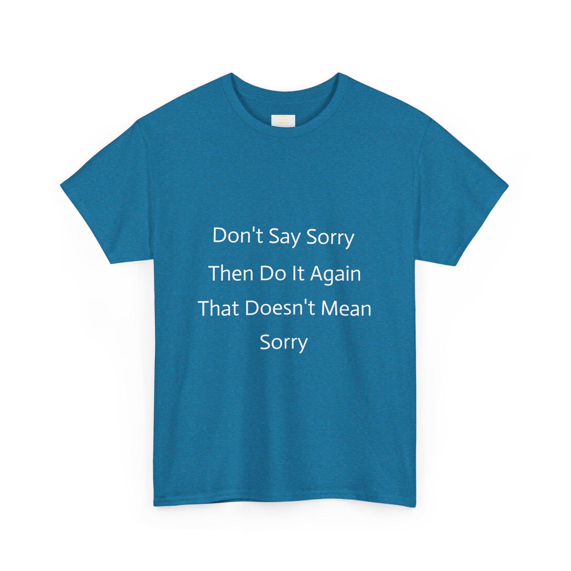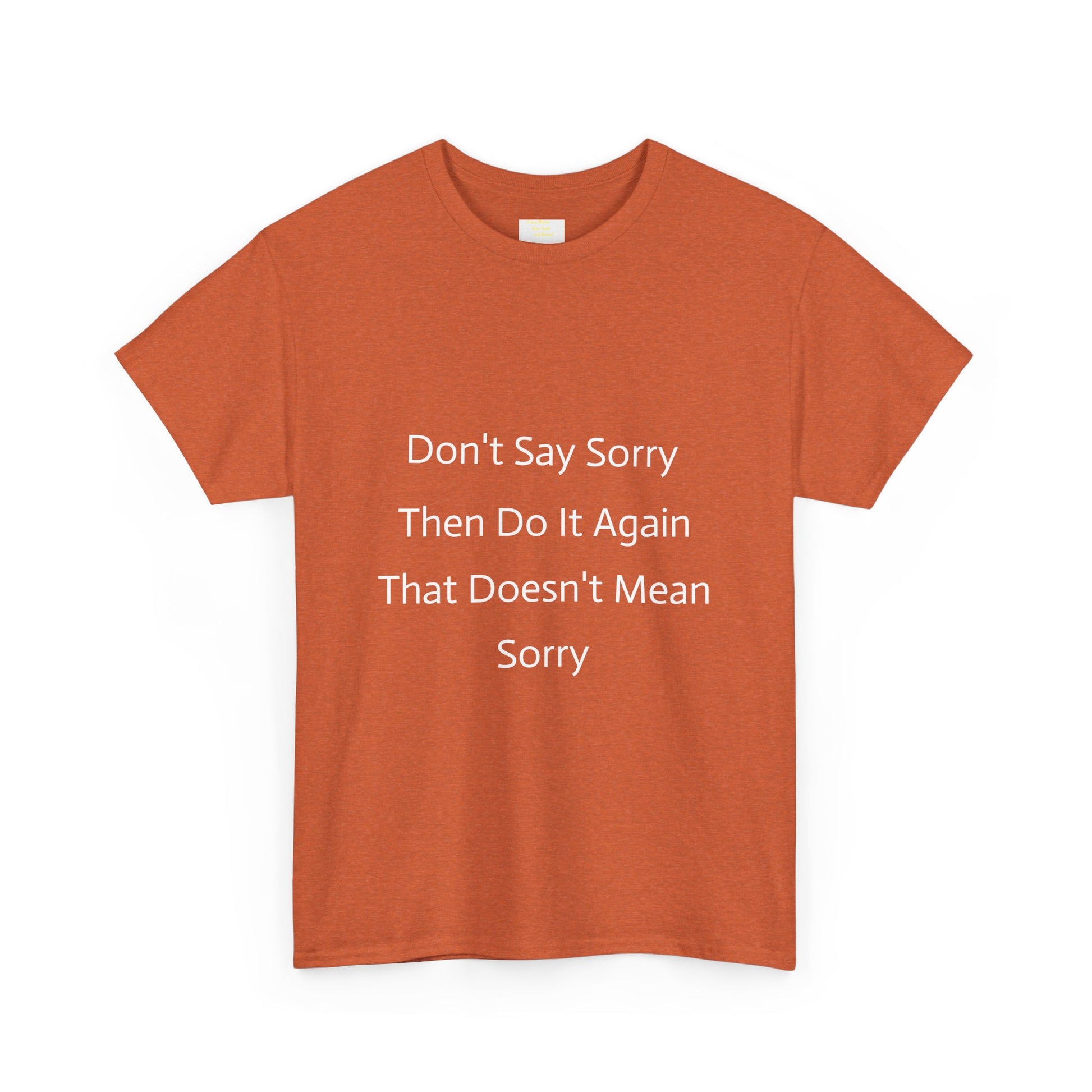 Unisex Heavy Cotton Tee - 'Don't Say Sorry, Then Do It Again' Statement Shirt, Funny Gift, Casual Wear, Perfect for Everyday and Events